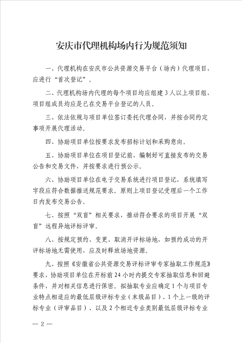 關(guān)于印發(fā)《安慶市代理機(jī)構(gòu)場內(nèi)行為規(guī)范須知》
