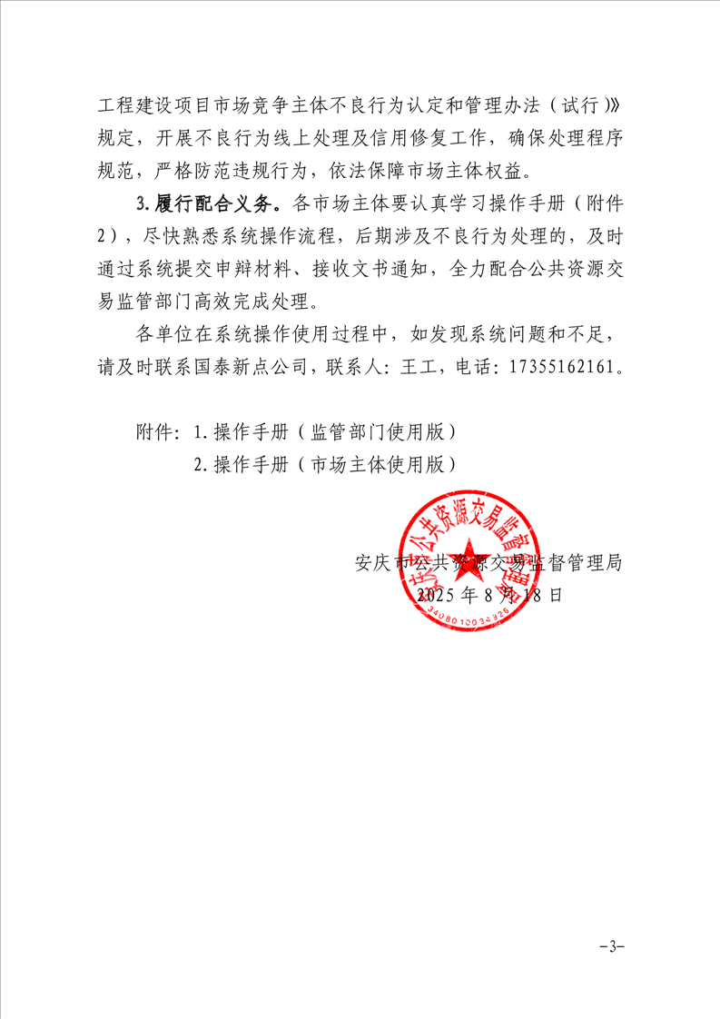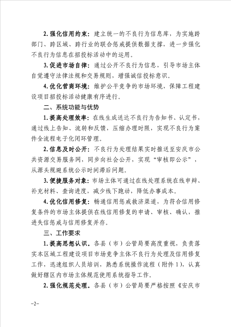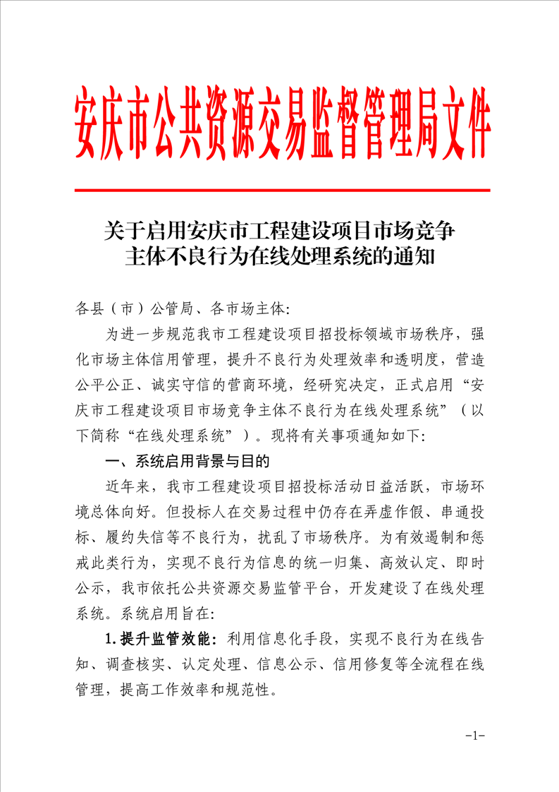 關(guān)于啟用安慶市工程建設(shè)項(xiàng)目市場(chǎng)競(jìng)爭(zhēng)主體不良行為在線處理系統(tǒng)的通知