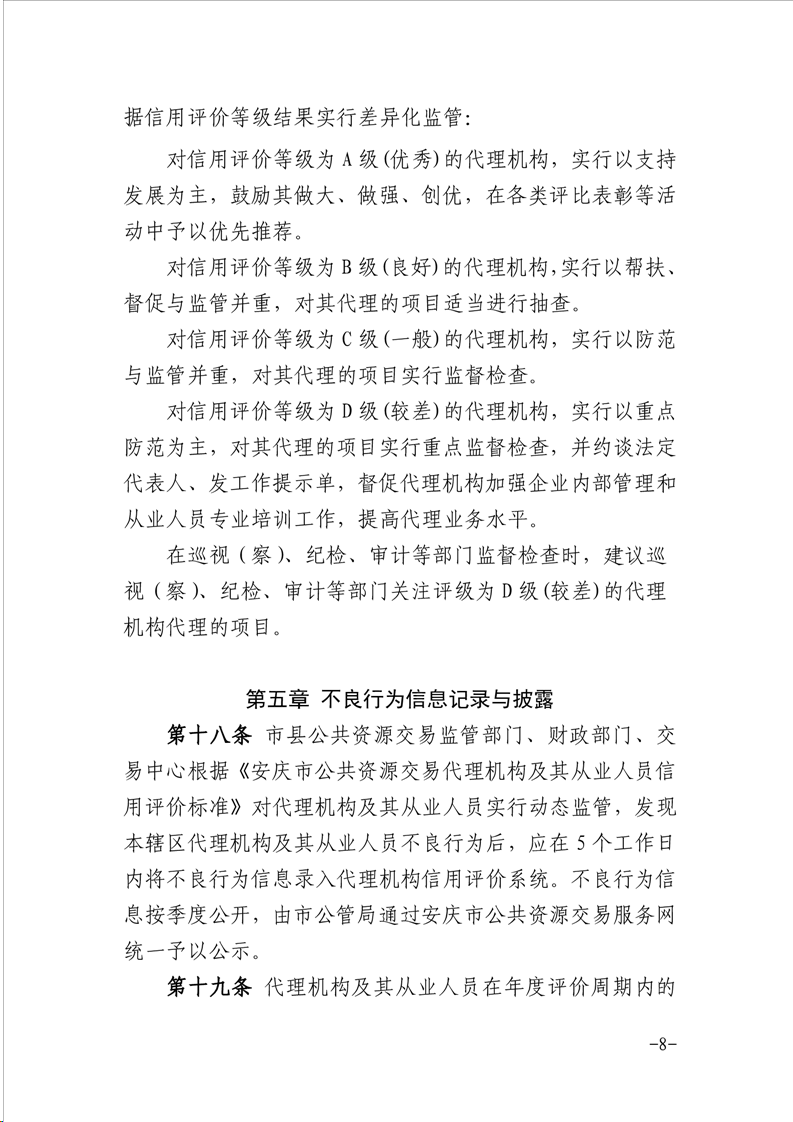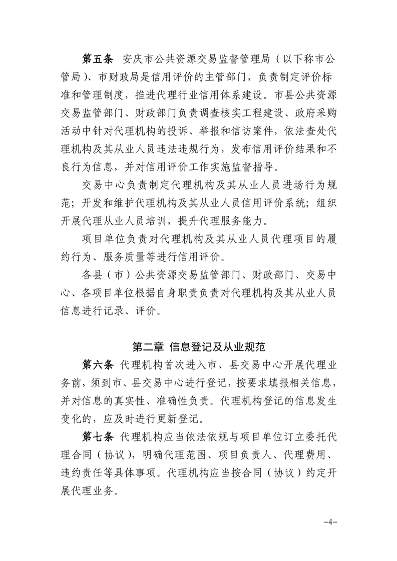 安慶市公管局 安慶市財(cái)政局關(guān)于印發(fā)《安慶市公共資源交易代理機(jī)構(gòu)及其從業(yè)人員信用評(píng)價(jià)管理暫行辦法》的通知