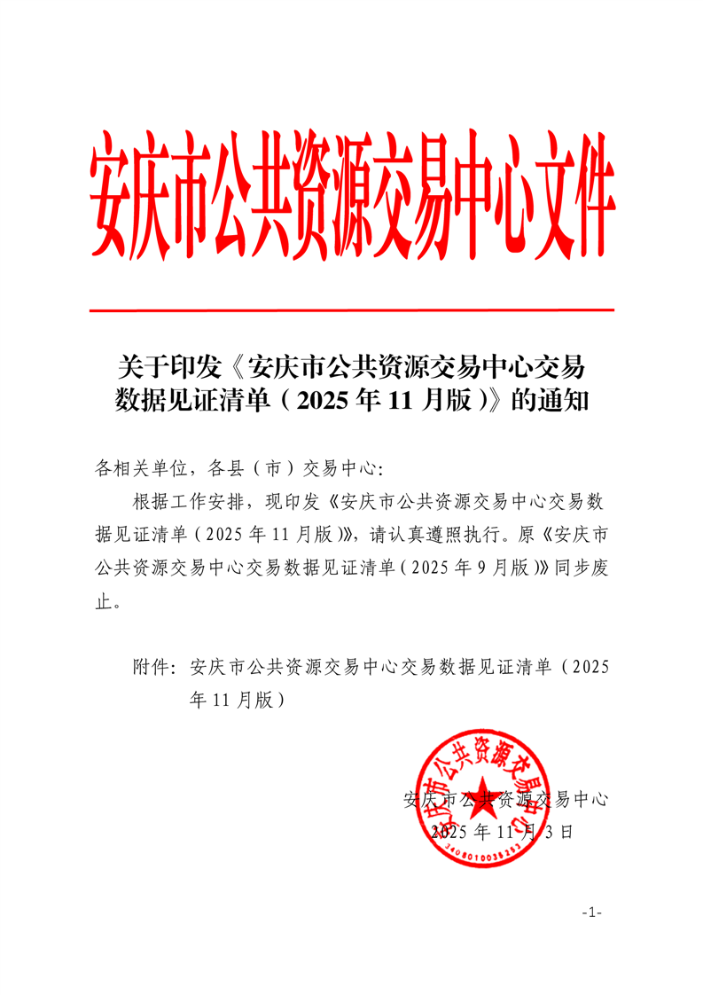 關于印發(fā)《安慶市公共資源交易中心交易數(shù)據(jù)見證清單(2025年11月版)》的通知