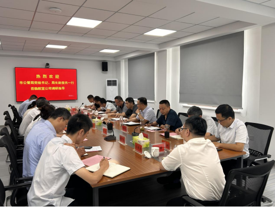 7月25日,市公管局黨組書記、局長趙俊杰帶隊到皖宜公司開展訪企入村專項行動,實地調(diào)研企業(yè)發(fā)展情況并召開座談會。市公管局黨組成員、副局長姚傳華,市公共資源交易中心副主任干杰,市交控集團黨委書記、董事長、總經(jīng)理耿仁平,以及皖宜公司領(lǐng)導(dǎo)班子成員、各部門負(fù)責(zé)人和職工代表參加座談。